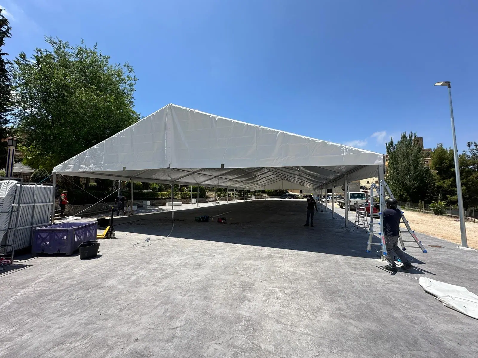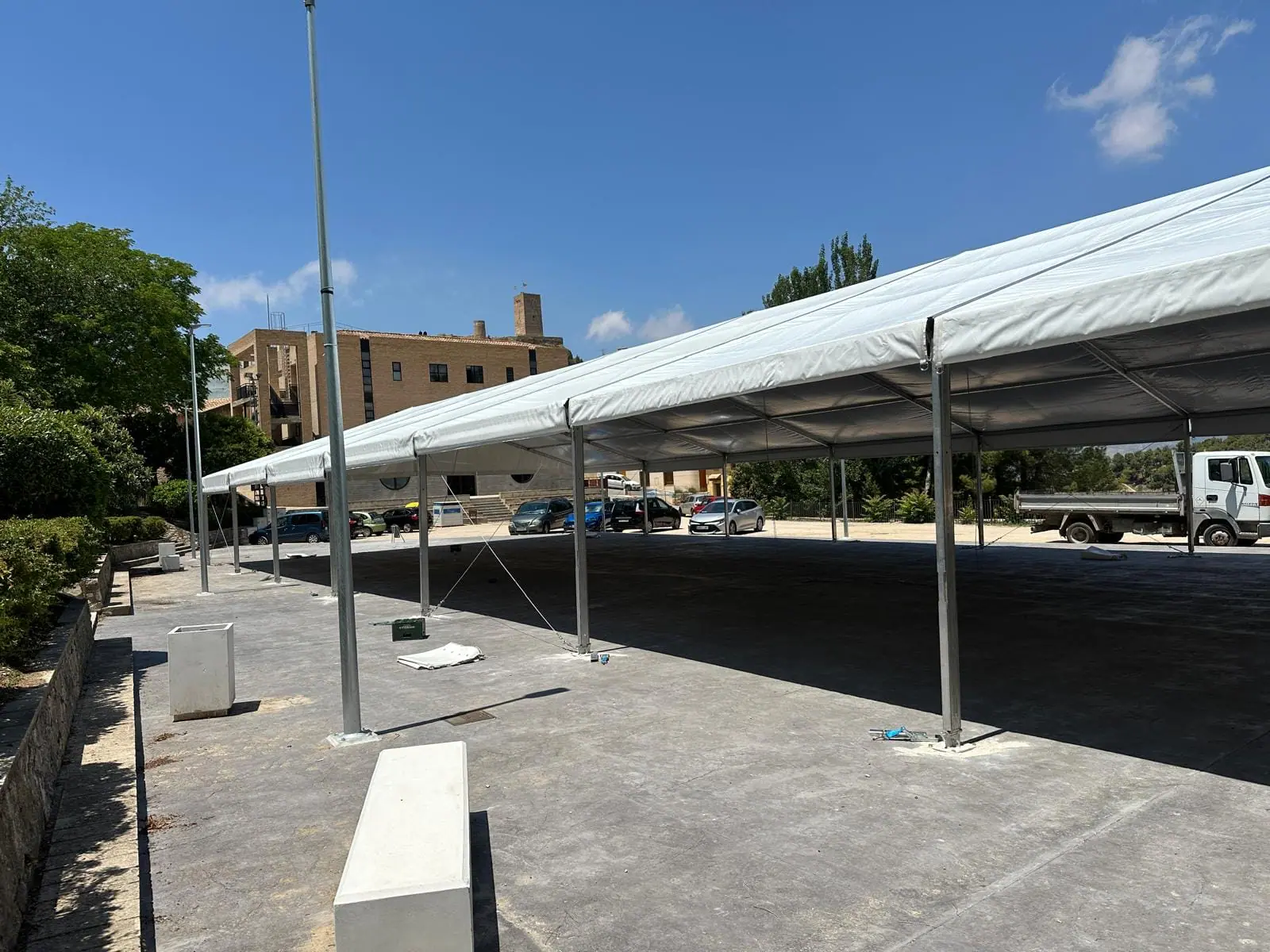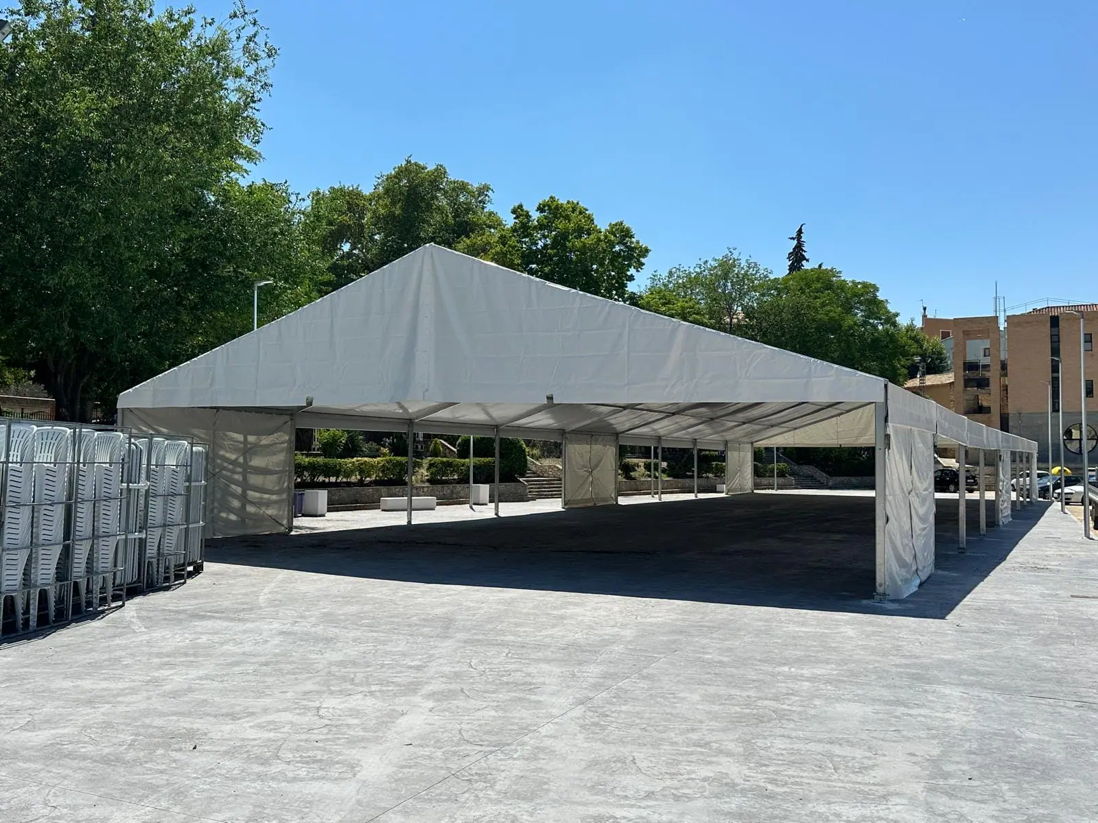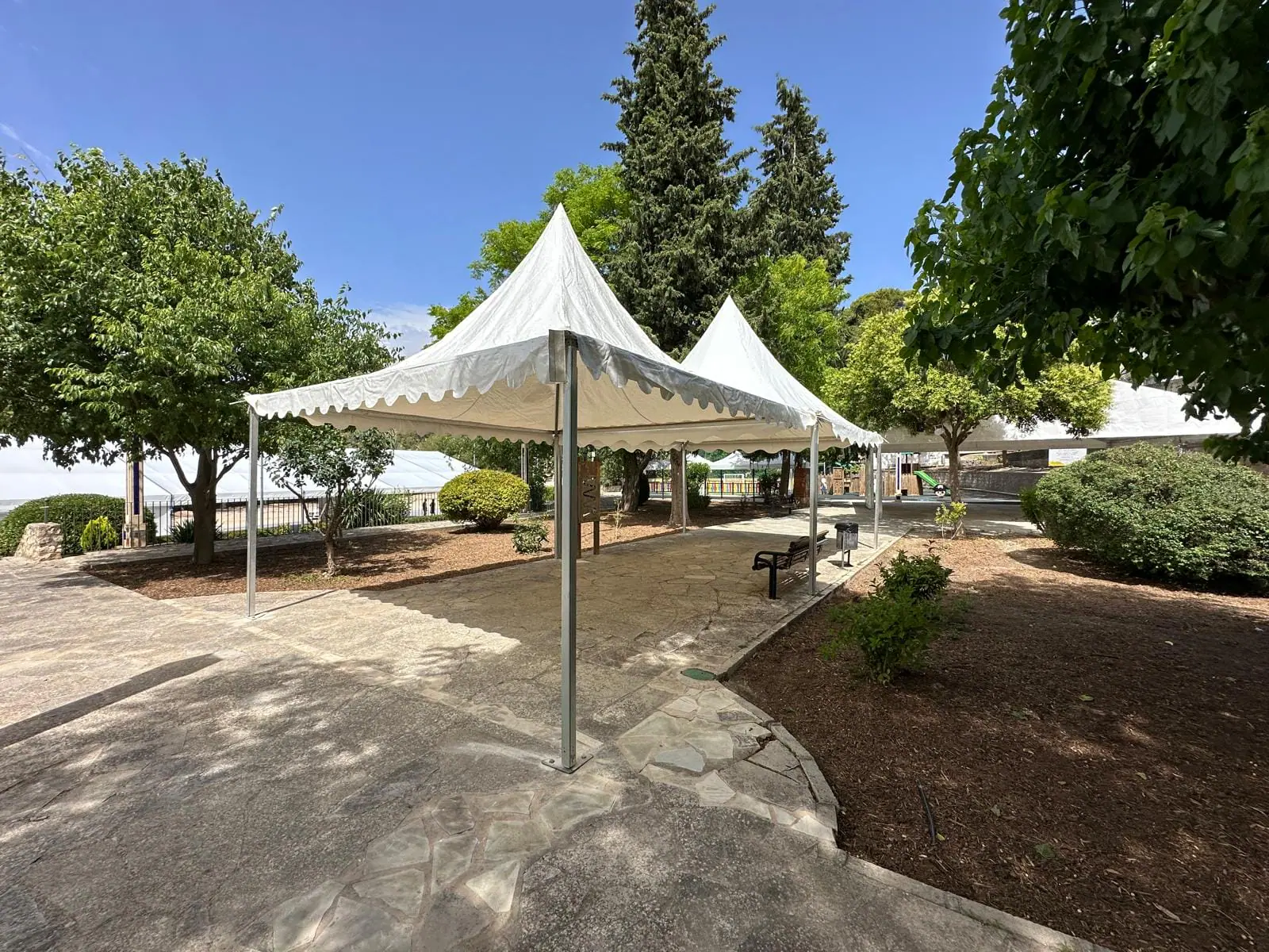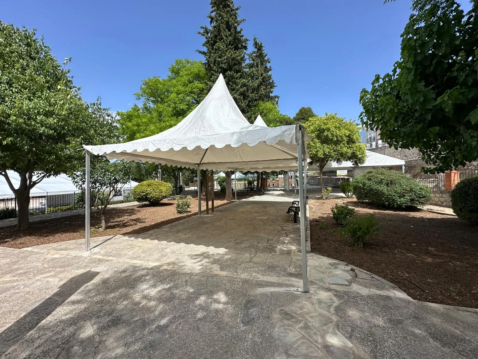 Montamos diversas carpas y jaimas en Biar. Este proyecto de Tec Tents incluye estructuras versátiles y elegantes, ideales para una variedad de eventos, desde bodas hasta ferias y celebraciones comunitarias. Las carpas y jaimas instaladas ofrecen soluciones personalizadas y de alta calidad, asegurando tanto la protección contra el clima como un ambiente estético y acogedor para todos los asistentes.